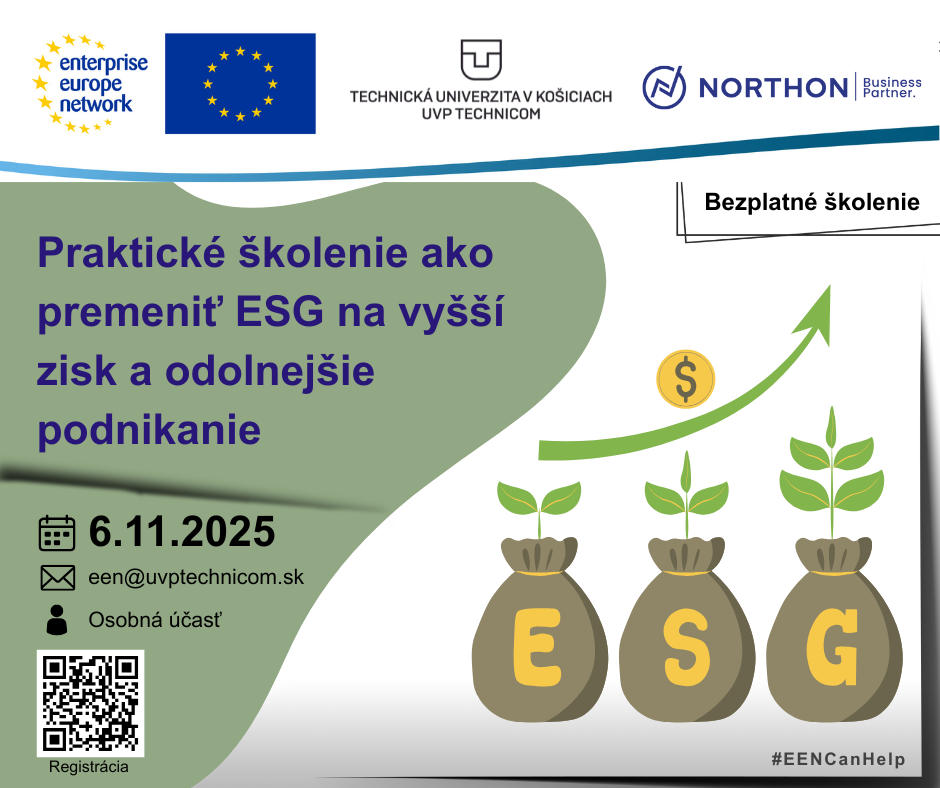 Posilnite svoje podnikanie, zrýchlite svoju transformáciu a nájdite príležitosti v sektoroch životného prostredia a energie! Enterprise Europe Network vás pozýva na matchmakingové podujatie Green Days Pollutec 2025 do francúzskeho mesta Lyon. Dátum konania: 7. – 10. október 2025Miesto konania: Lyon, FrancúzskoRegistrácia: https://www.b2match.com/e/green-days-pollutec-2025/sign-up/create-accountWeb stránka podujatia: https://www.b2match.com/e/green-days-pollutec-2025/components/54411 Podujatie je určené spoločnostiam, výskumným centrám, klastrom, verejným inštitúciám, odborníkom, nákupcom, ... pôsobiacim […]