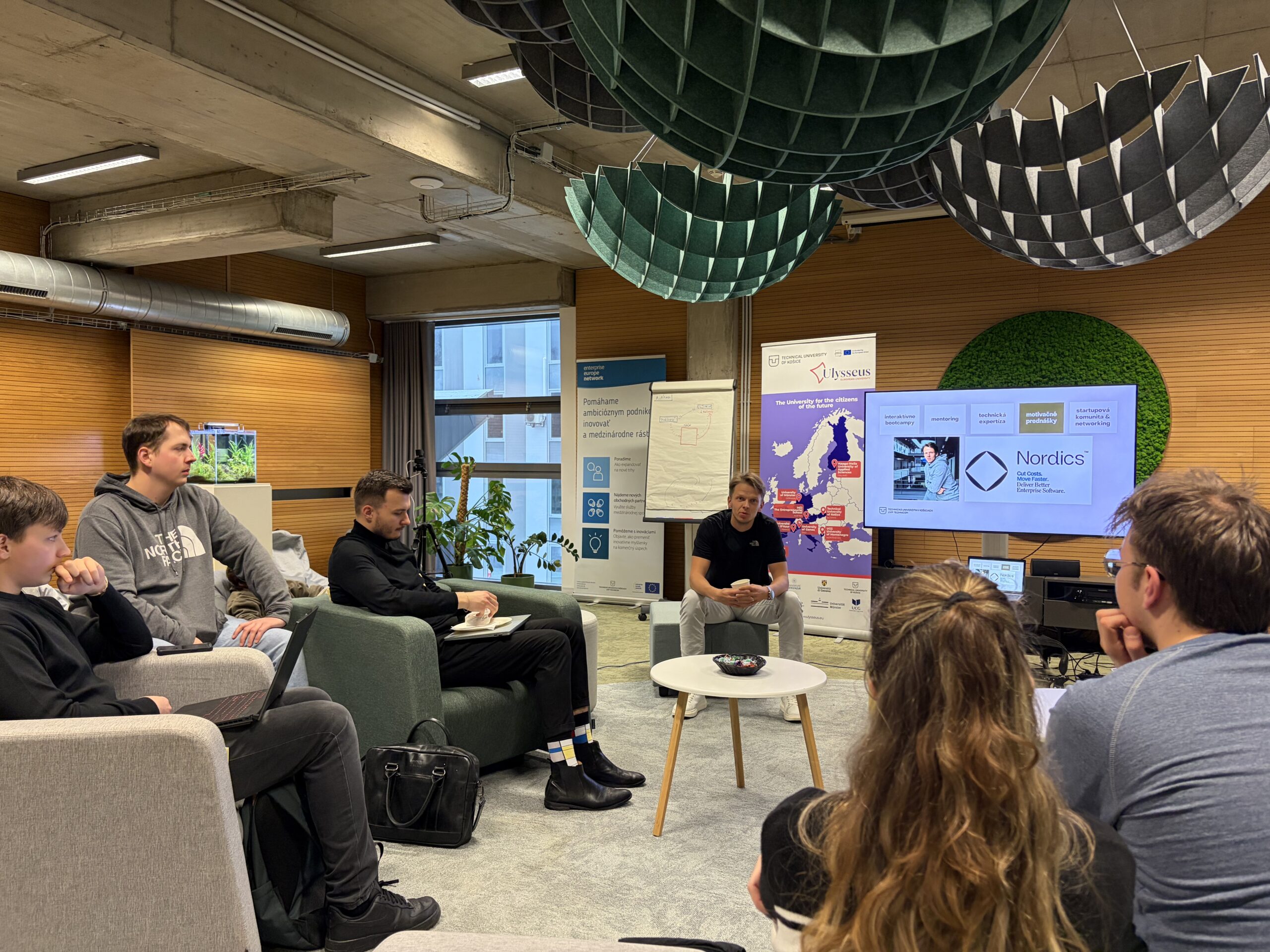 Súčasťou programu bola aj motivačná prednáška Lukáša zo startupu Nordics IO (Inkubátor TUKE). Vo svojom vystúpení priblížil cestu startupu od pôvodného trojčlenného tímu až po súčasný 15-členný kolektív. Účastníkom ponúkol autentický pohľad na proces rastu, výzvy spojené so škálovaním tímu, ako aj praktické skúsenosti z budovania technologického startupu.