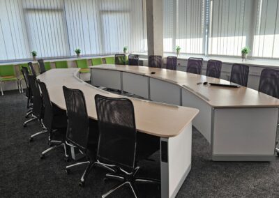 Usporiadanie: 2 rokovacie stoly (8 vs. 8), bočné sedenie (press)