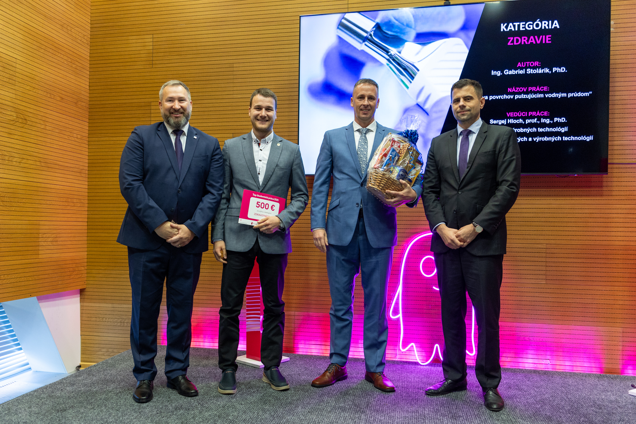 - Ing. Gabriel Stolárik, PhD. – Povrchová úprava bioimplantátov pomocou pulzného vodného lúča, ekologická metóda vyvinutá v spolupráci s Masarykovou univerzitou v Brne.